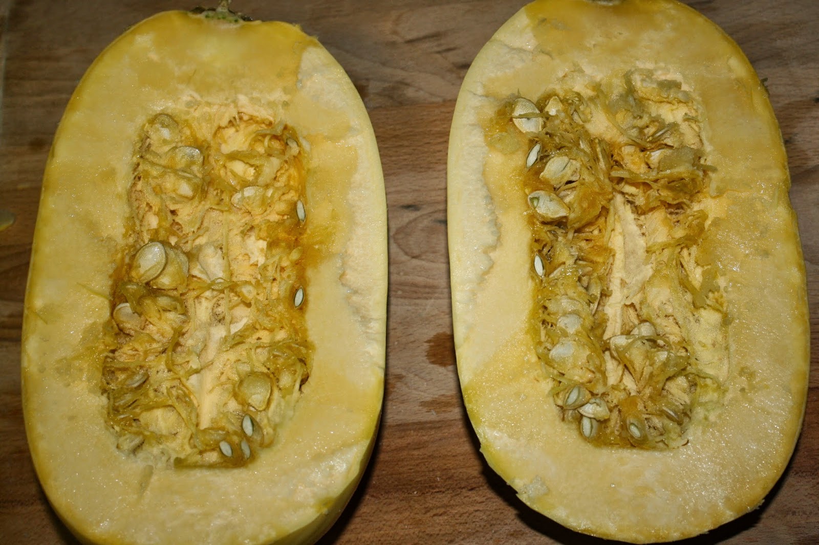 When I went there for the first time, I was so excited at all the choices, and when I spotted a spaghetti squash I was ready for some cookin'. I've been working to toss more vegetables into my diet, and with pasta being one of my big weaknesses, spaghetti squash is a perfect one to try.